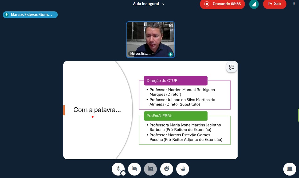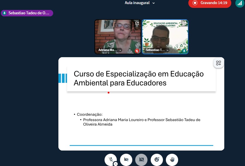 Na manhã do dia 21 de fevereiro de 2026 ocorreu a aula inaugural do Curso de Especialização em Educação Ambiental para Educadores – turma 2026. Com a presença do Diretor do CTUR, Professor Marden Manuel Rodrigues Marques e do Pró-Reitor Adjunto de Extensão, Professor Marcos Estevão Gomes Pasche, os trabalhos foram realizados pela plataforma de webconferência RNP.