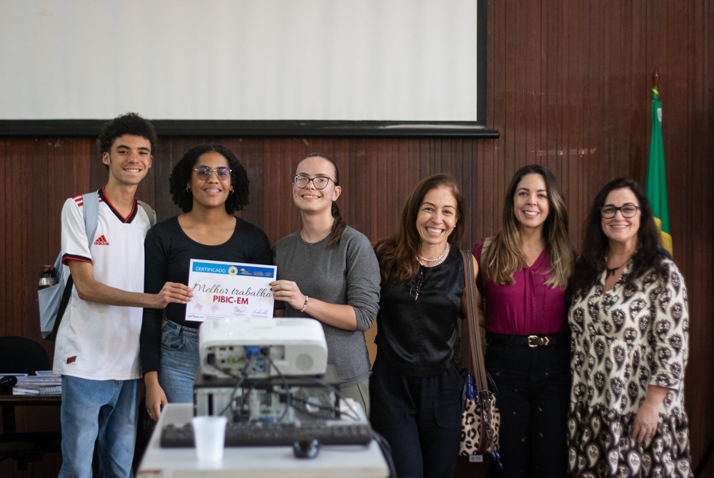 Alunos e professoras posam com o certificado de melhor trabalho. Foto: Luan Cezário/CTUR