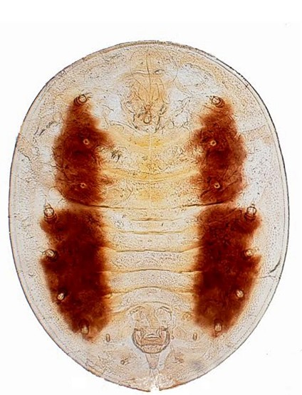 Ninfa de Aleurodicus pulvinatus, montada em lâmina e lamínula. componente do Acervo Didático do laboratório de Fitossanidade do CTUR ‘Paulo César R. Cassino’