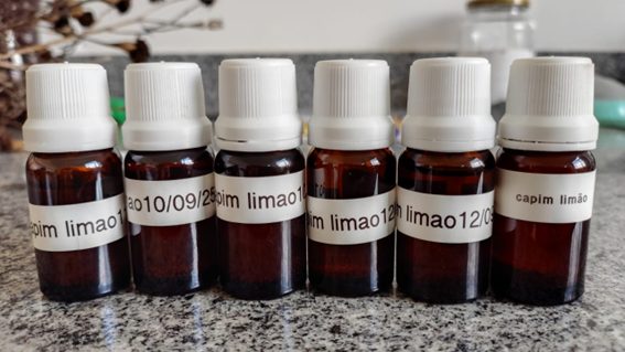 Óleos essenciais extraídos no Laboratório. Foto: Acervo Hugo