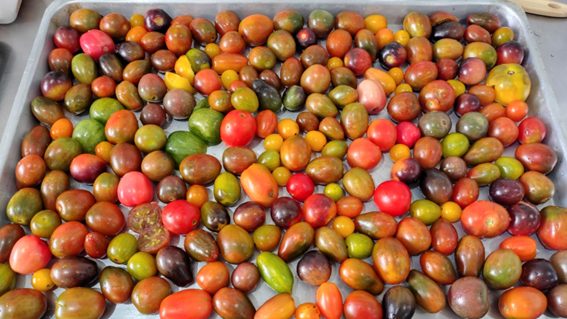 Tomates coloridos coletados na horta do CTUR. Foto: Acervo Hugo