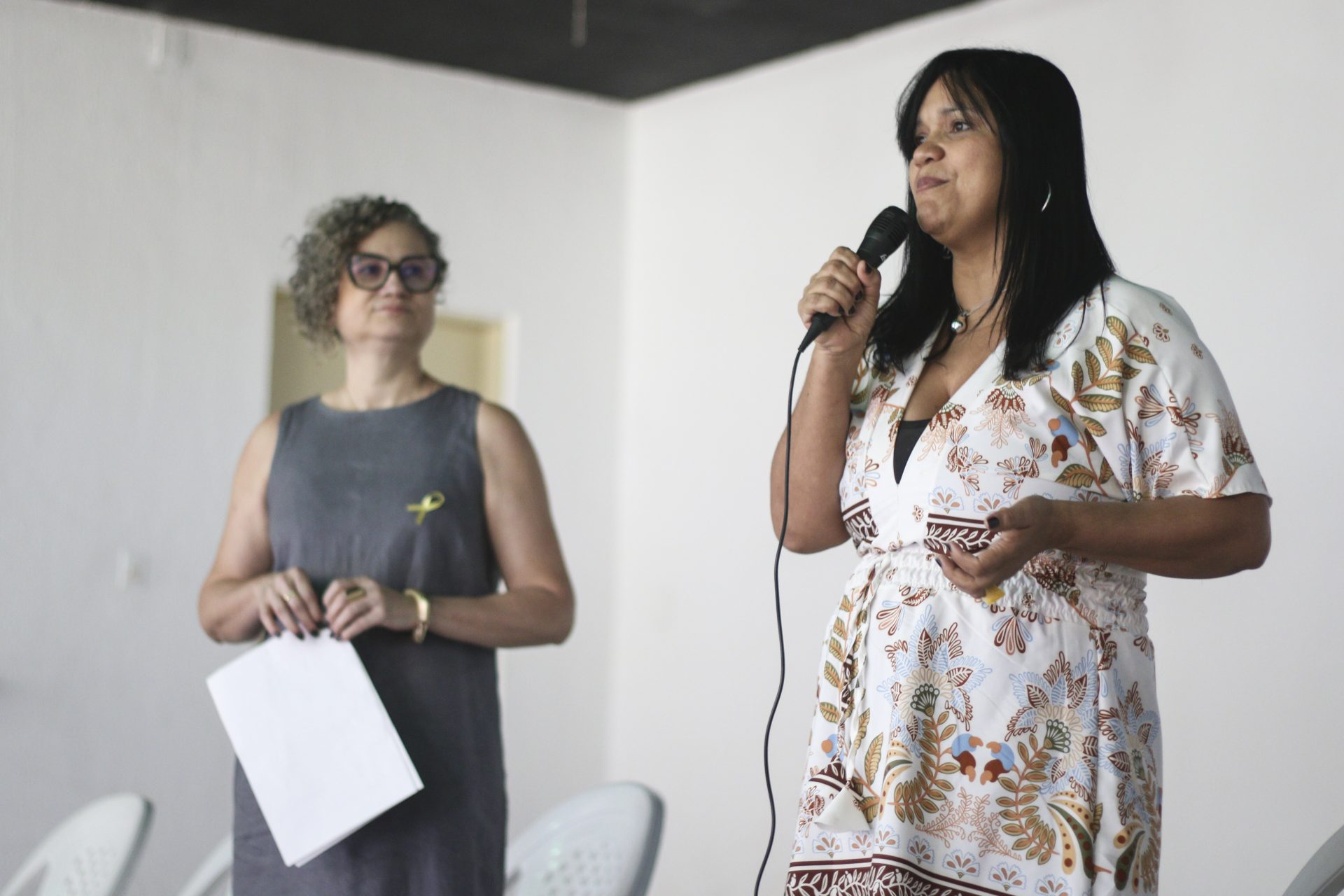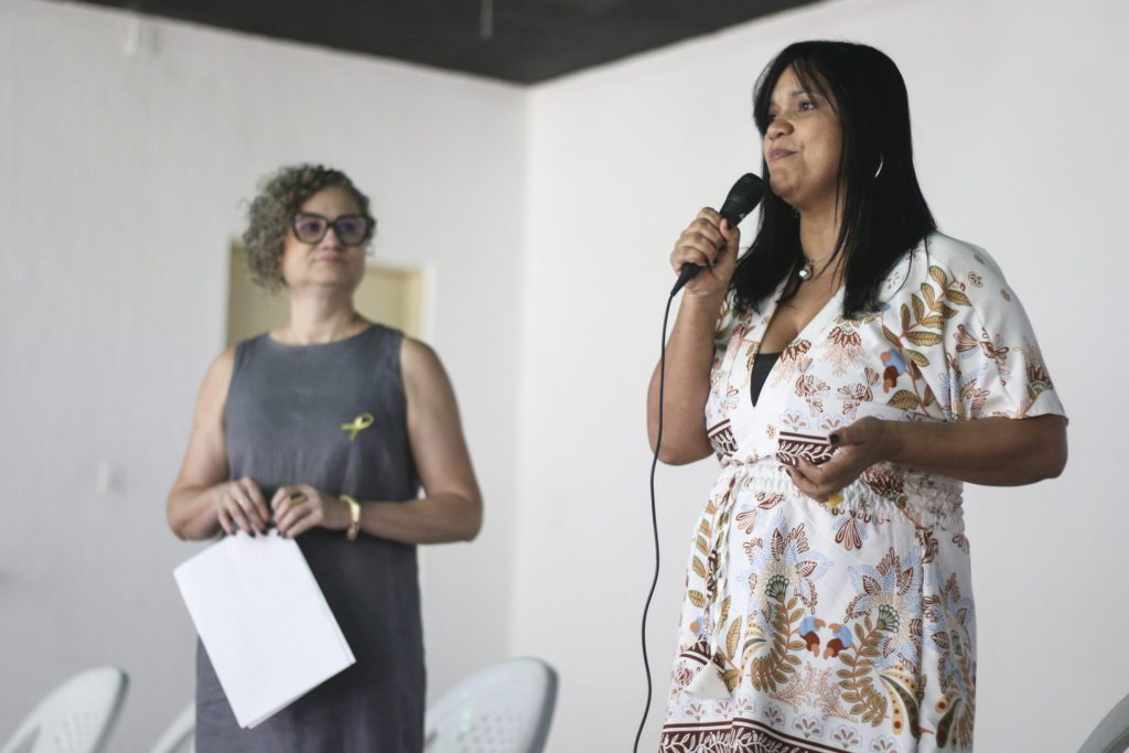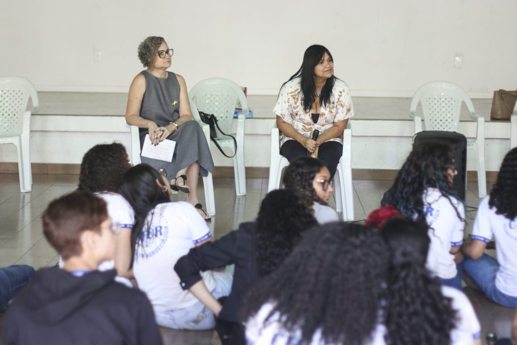 No auditório, aconteceu uma roda de conversa sobre saúde mental, conduzida pelas psicólogas da UFRRJ, Vera Silva e Luciana.