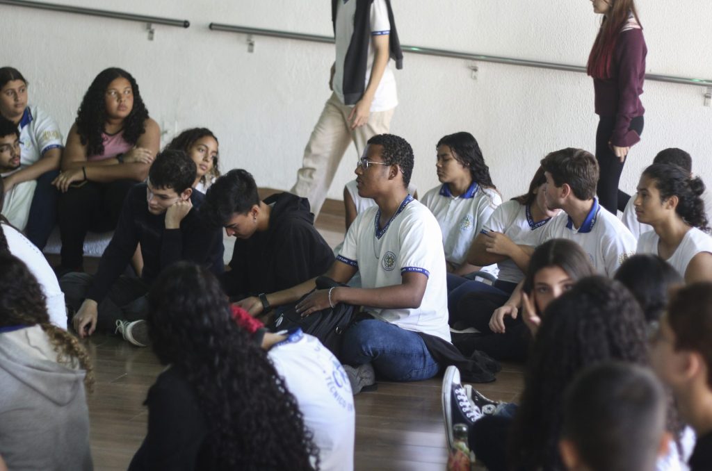 Em um momento mais leve, os alunos participaram de dinâmicas e tiveram a oportunidade de escrever, em um papel, o que gostariam de apagar de suas vidas. Em seguida, descartaram esses papéis no lixo, simbolizando o descarte das coisas indesejadas.